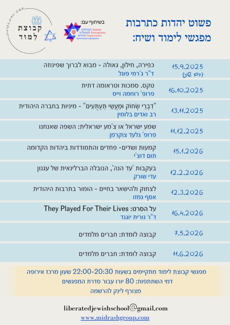 קבוצת לימוד – פשוט יהדות כתרבות – מתחילה שנת פעילות שלישית!
